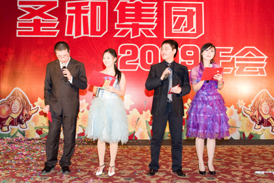 爆竹聲頻鬧庭軒,又逢春風(fēng)送舊年。轉(zhuǎn)眼,又到了揮手惜別舊年,滿懷喜悅迎接新年的時(shí)候了。元月16日晚,圣和集團(tuán)在寧員工、駐外辦事處經(jīng)理及各地代理商380余人歡聚一堂,在維景國(guó)際大酒店隆重舉行2009年迎春聯(lián)歡晚會(huì)。整個(gè)大廳座無(wú)虛席,華燈齊放、彩帶高懸,深紅的幕布為舞臺(tái)披上了節(jié)日的盛裝,大家歡聚一堂,共迎新春佳節(jié),晚會(huì)在歡快的樂(lè)曲聲中拉開(kāi)帷幕。