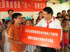 5月30日下午,江蘇團(tuán)省委、省青聯(lián)、省少工委組織在蘇部分全國(guó)青聯(lián)委員赴建鄴區(qū)外來(lái)務(wù)工子弟學(xué)校——南京博文培訓(xùn)學(xué)校,開(kāi)展了“心手相連鑄未來(lái)”——“六一”捐贈(zèng)活動(dòng),并與小朋友們共同歡度“六一”國(guó)際兒童節(jié)。