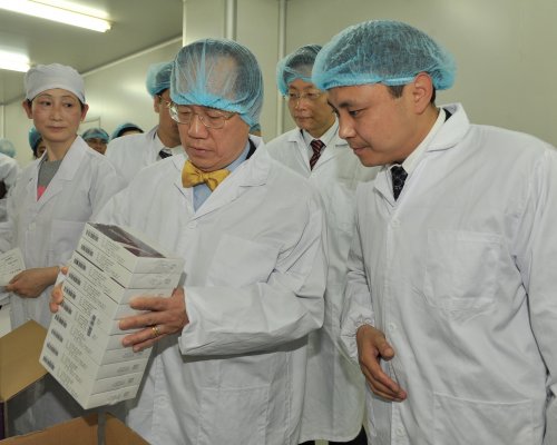 隨后,曾蔭權行政長官一行在王勇董事長的陪同下先后參觀了研究院、生產車間、質量控制中心和全自化立體高架庫,了解了公司的主打產品、質控執(zhí)行和自動化應用等情況。