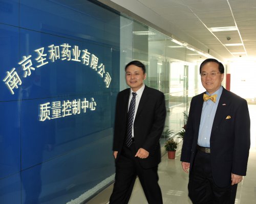 王勇董事長對曾蔭權行政長官蒞臨圣和表示歡迎,并通過圣和集團宣傳短片向來訪貴賓介紹了我公司的發(fā)展概況,曾蔭權特別了解了我公司列入國家重大新藥創(chuàng)制科技重大專項的國家一類新藥左奧硝唑的市場開拓情況,并表示,香港正致力發(fā)展醫(yī)療產業(yè),并已成立檢測和認證局,相信將來與內地制藥業(yè)有更廣闊的合作空間。王勇董事長也表示對香港市場充滿期待,希望能有機會與港方進行合作。