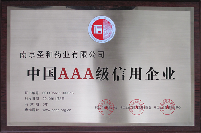 我公司一直以“質(zhì)量為生命信譽(yù)為基石”為企業(yè)質(zhì)量觀,并貫穿整個(gè)生產(chǎn)經(jīng)營活動(dòng)。先后被南京市政府授予“重合同守信用企業(yè)”,被稅務(wù)部門評(píng)為“A級(jí)納稅信用等級(jí)”、“納稅大戶”,市勞動(dòng)和社會(huì)保障局授予“誠信單位”,省醫(yī)藥行業(yè)協(xié)會(huì)授予“誠信企業(yè)”。這些榮譽(yù)的獲得均是對(duì)我司積極構(gòu)建誠信企業(yè)、和諧勞動(dòng)關(guān)系的充分肯定。我公司將一如繼往的做好信用管理工作,誠信經(jīng)營,讓圣和成為醫(yī)生和患者最值得信賴的企業(yè)!