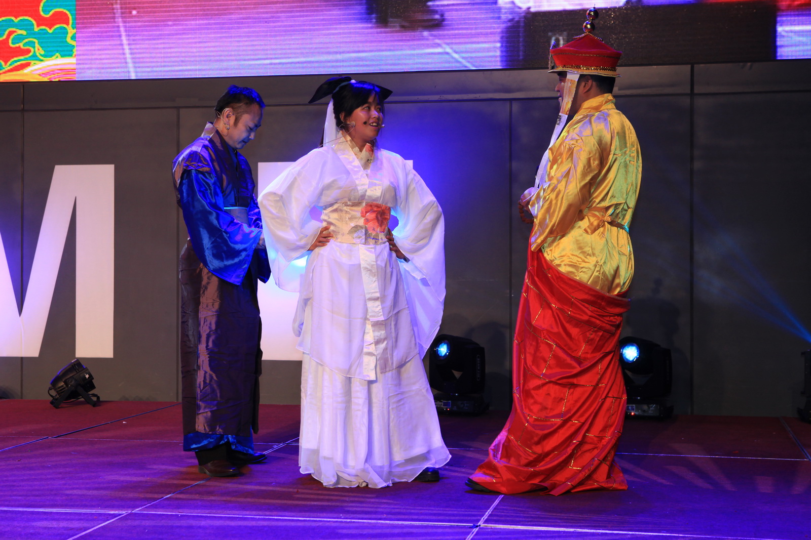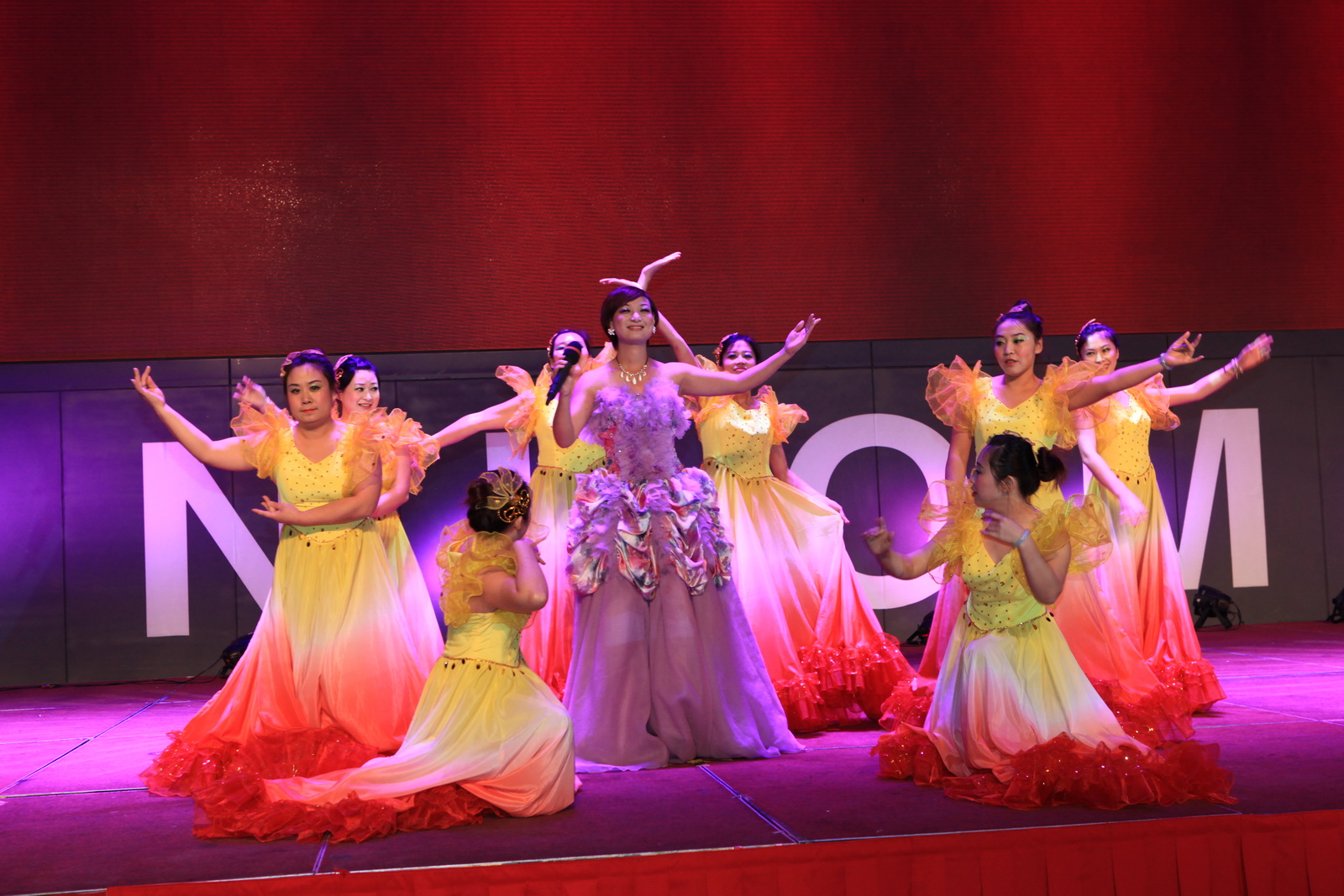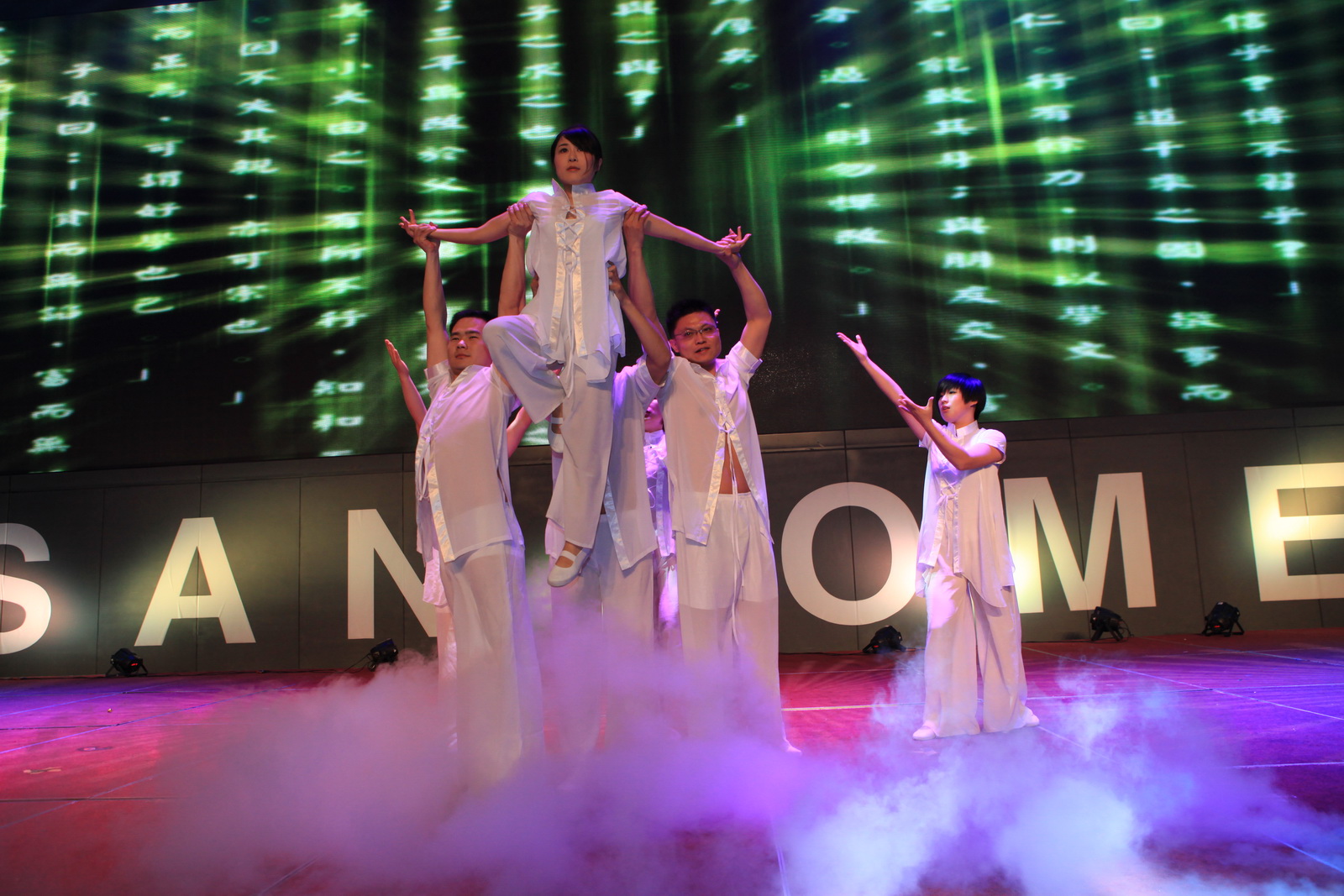 舞蹈《好運(yùn)來》拉開了演出的序幕,視頻短片《光耀未來》寓意著,“榮光耀,千里之行始今朝,展未來,萬里揚(yáng)帆再啟航”。由吉遼大區(qū)孫瑤等帶來的歌伴舞《相信》和來自南京德云社的兩位著名相聲演員,給大家?guī)砹瞬灰粯拥穆犛X享受。江蘇大區(qū)的童沅等帶來的舞蹈串燒,展示了圣和員工的活力和朝氣。研發(fā)中心的視頻互動《爸爸去哪兒了》,喚起了大家無限的親情感受。江蘇省歌舞團(tuán)演員奉上的民歌《越來越好》和《在希望的田野上》,增添了紅紅火火的氣氛。黑龍江大區(qū)的張巍巍、郭強(qiáng)兩人合作的小品《吃面》,給大家?guī)砹瞬簧贅纷。制劑分廠三車間任詠秋的歌伴舞《望鄉(xiāng)》,唱出了無盡的鄉(xiāng)情。奇妙的《水晶芭蕾》,給大家?guī)砹瞬灰粯拥挠^賞視覺。云貴大區(qū)的小品《新白蛇傳》中插播的廣告詞,讓圣和人記憶猶新。研發(fā)中心何承華帶來了歌曲《女人花》,盡顯柔情感染了全場。供應(yīng)鏈徐明秀、滿金萍帶來快板表演《供應(yīng)鏈之聲》,道出了供應(yīng)鏈的心聲。京劇樣板戲串燒、制劑分廠一車間崔紅俊的獨(dú)唱《紛飛》,讓大家一飽耳福。上海大區(qū)譚秋艷等的現(xiàn)代舞《思韻》,毫不遜色專業(yè)型的舞蹈演員,輕盈的舞姿散發(fā)著時代的氣息。置業(yè)公司的小合唱《真心英雄》,掀起了本場晚會的高潮,王勇董事長也被邀登臺同唱。北京大區(qū)的舞蹈《好日子》落下了整場晚會的帷幕,寓意著新的一年我們迎來2014,讓我們盛情邀約好日子的到來。