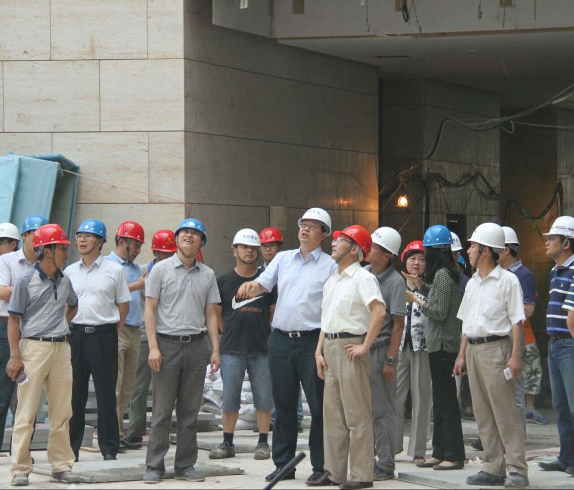 陳剛副市長一行穿過六朝博物館項目一層大廳,著重視察了博物館“采光頂”以及“展陳”施工現(xiàn)場,逐層查看了項目施工進展情況,詳細(xì)詢問了工程進展中存在的問題,并認(rèn)真聽取了蘇世功總經(jīng)理關(guān)于工程質(zhì)量、安全、進度方面的情況匯報。陳剛副市長對博物館建設(shè)過程中各項質(zhì)量、安全、工期完成等方面表示非常滿意,他強調(diào):”南京六朝博物館“8月開館后將成為南京市城市的標(biāo)志性建筑,也是2014年南京青奧會向國際友人呈現(xiàn)的世界歷史文化名城建設(shè),所以一定要抓緊工期,要保質(zhì)高效并且在不影響南京青奧會下達的各項禁令的情況下,如期開館。