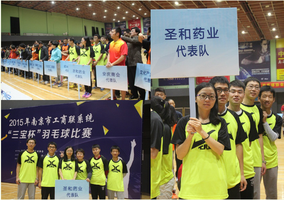 本網(wǎng)訊 為豐富全市工商聯(lián)系統(tǒng)文體生活,增進會員企業(yè)、商會間的交流互動,推進民營企業(yè)體育文化建設,營造“健康、快樂、和諧、友誼”的良好氛圍,南京市工商聯(lián)于11月12日在五臺山體育館舉行了2015年南京市工商聯(lián)系統(tǒng)“三寶杯”羽毛球比賽,我司供應鏈六名隊員在小球協(xié)會會長朱麗麗的帶領下代表圣和藥業(yè)參加了此次比賽。