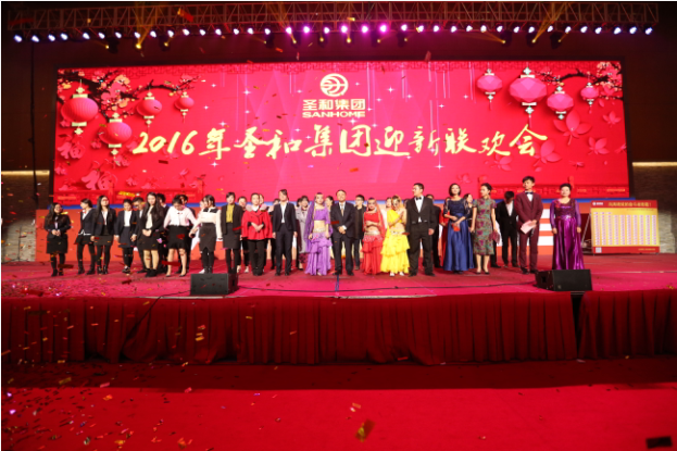 本網(wǎng)訊 2015年12月31日下午,冬日的南京寒氣襲人,然而地處河西奧體新城的金陵會(huì)議中心中華廳內(nèi)卻春意正濃,巨幅LED屏幕上氣勢(shì)磅礴的“龍嘯九天”動(dòng)畫(huà)震撼全場(chǎng),一首亮堂堂的開(kāi)場(chǎng)歌舞《開(kāi)門(mén)紅》響徹整個(gè)大廳,“紅四方,大風(fēng)光!”2016年圣和集團(tuán)迎新聯(lián)歡會(huì)在這里正式拉開(kāi)帷幕。本次聯(lián)歡會(huì)將對(duì)受表彰員工的頒獎(jiǎng)穿插在節(jié)目中進(jìn)行,使一千多名圣和奮斗者們?cè)诒M情欣賞歌舞的節(jié)目同時(shí),能深切感受到圣和文化傳遞出來(lái)的價(jià)值觀。